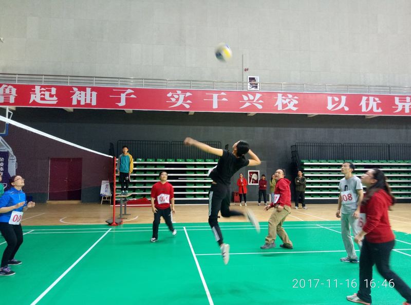 11月16日下午,学校体育馆,jinnianhui金年会诚信至上2017年“安康杯”教职工气排球赛半决赛、决赛如期举行,机关二队、外国语学院、数计学院、地旅学院四只代表队捉对厮杀,地理与旅游学院最后胜出,摘取了该次赛事的桂冠。
