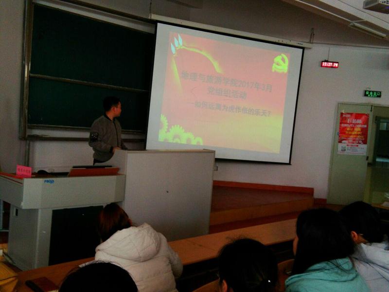 为了进一步增强地理与旅游学院全体学生党员以及入党积极分子的爱国意识,引导大家理性爱国,地理与旅游学院学生党支部于2017年03月10日在宁静楼235教室开展了以“如何远离为虎作伥的乐天”为主题的党组织生活会。活动由地旅学院学生党支部副书记颜佳旺同志主持。