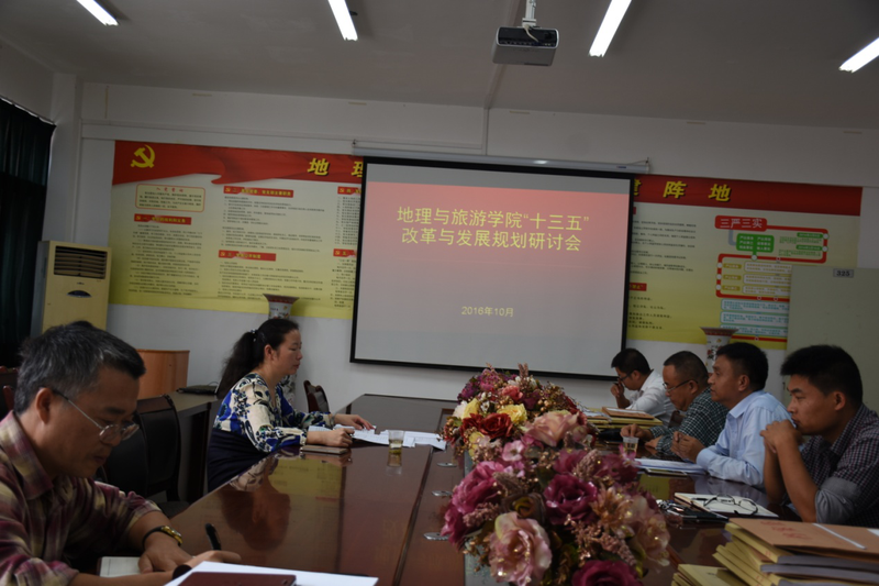 10月25日下午,地理与旅游学院“十三五”规划改革与发展研讨会在地旅学院会议室举行,学校发展规划处副处长姚篮代表学校到会指导,地理与旅游学院院长李乐京主持论证会,地旅学院党委书记吴亚平、副院长张凤太,以及各教研室与实验实训室负责人、博士代表、学术委员会成员等相关人员参加研讨会。