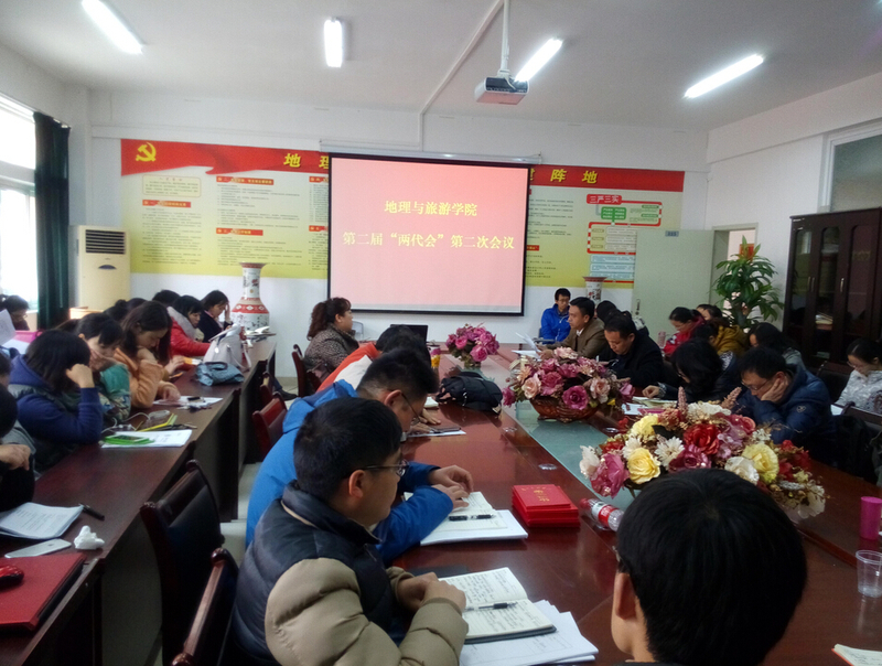 3月11日下午,地理与旅游学院工会第二届“两代会”第二次会议在宁静楼325会议室召开,学院领导和全体教职工50余人出席了本次会议。会议由院党委副书记吴亚平同志主持。会议第一项由院长李乐京同志代表学院作工作报告,对学院2015年工作进行了回顾与总结,并对2016年学院各项工作做了部署,指出2015年是学校本科教学合格评估年,学院坚持以人才培养为中心,圆满完成各项工作任务,推进了事业发展。过去的一年,学院积极主动完成学校安排的各项工作,所取得的成绩来之不易,这是金年会官网全体教职员工同舟共济、开拓奋进的结果。2016年学院要继续全面围绕提高人才培养质量这一中心工作,坚定不移地走内涵式发展道路,为教书育人、科学研究创造良好环境。要坚持育人为本,全面提高人才培养水平;坚持人才战略,努力破解人事改革难题;坚持科学管理,不断完善学院治理体系。会议第二项由学院工会主席俞进同志做2015年度工会工作报告,院工会秉承“党政所急、职工所需、工会所能”的理念,紧紧围绕学校的工作大局,切实履行“维护、建设、参与、教育”等职能;并对2016年工会工作从加强教职工队伍和工会自身建设、完善学院民主管理、做好教职工福利工作等三个方面提出了构思和设想。会议第三项由学院办公室任继英同志作了2015年学院公用经费财务开支报告。报告中详细介绍了2015年度在基本建设和服务支出及其他资金支出等总支出情况。第四项全体工会会员听取学院工会关于金年会官网“两代会”提案情况说明。其间,各位代表进行了热烈的讨论,最后举手表决通过了以上各项工作报告。