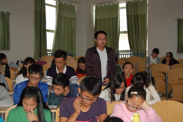 中午12点30分,知识问答活动准时进行,金年会官网党委副书记吴亚平为此次活动致辞。他提出,我们要对学校和学院自身发展有所了解,从而激发同学们更加热爱学校热爱自己所学专业,也能很好地向专家展示学校风采。林华院长助理也到现场对活动表示了高度的关注和肯定。而后,学生会主席李丁对知识问答的规则及题型做了讲解,本次问答采用随机点名的方式进行,题型包括单项选择题、多项选择题及解答题三种题型共25道题,问答活动的题目包括金年会官网的办学层次定位、教学院部与专业设置、金年会官网的发展目标以及本科教学工作评估方案的三个基本内容等,同学们通过自己对学校的了解对所提出的问题一一解答,有的同学认为答案并不完全,便积极的进行补充,使得场面活跃起来。活动最后,刘兴老师对此次活动做了总结:“同学们对教学工作评估有一定的了解,但还不够全面,需要继续努力,像这样的评估知识问答活动还需要继续开展。”