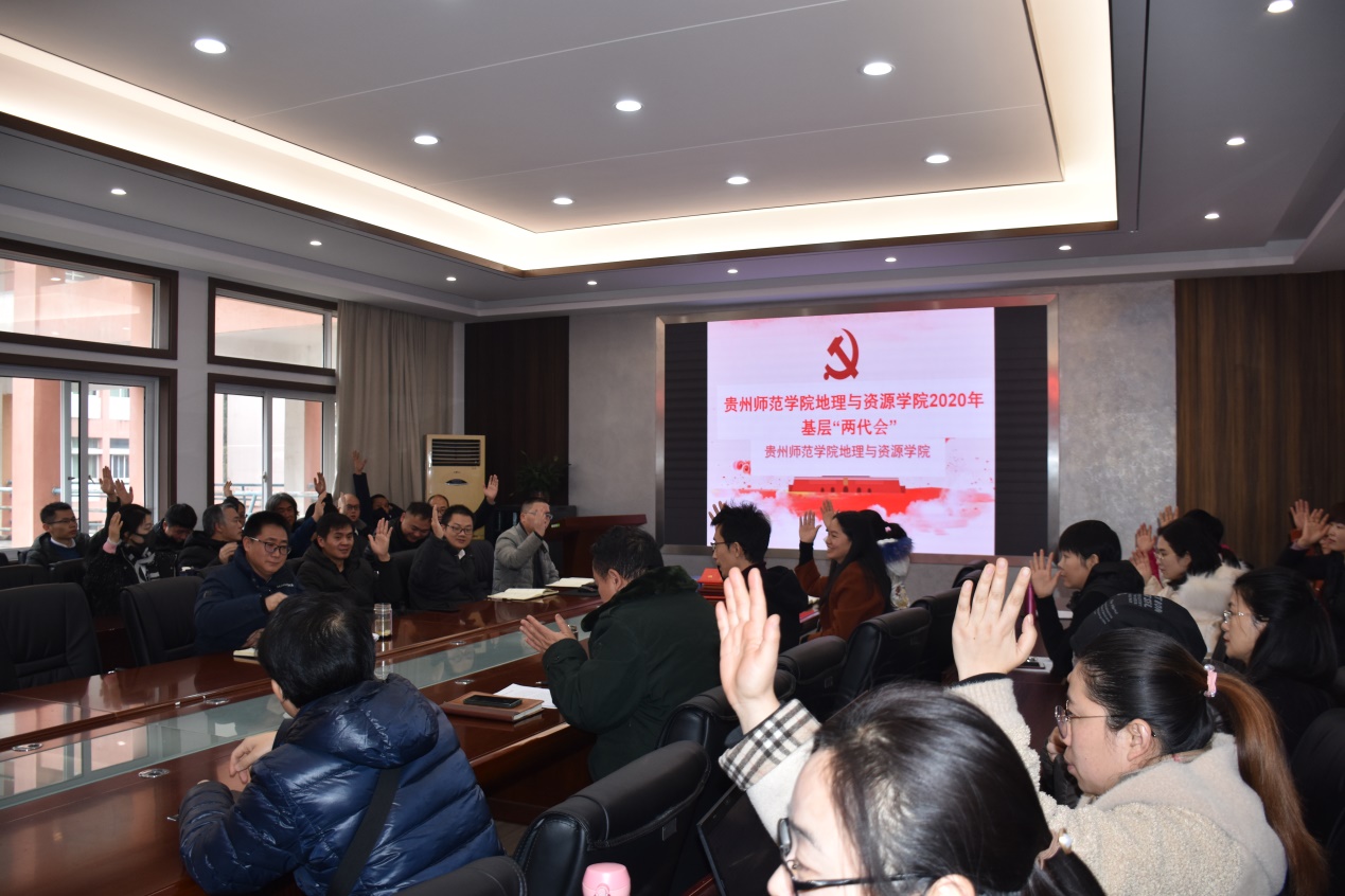 教职工举手表举各项报告通过