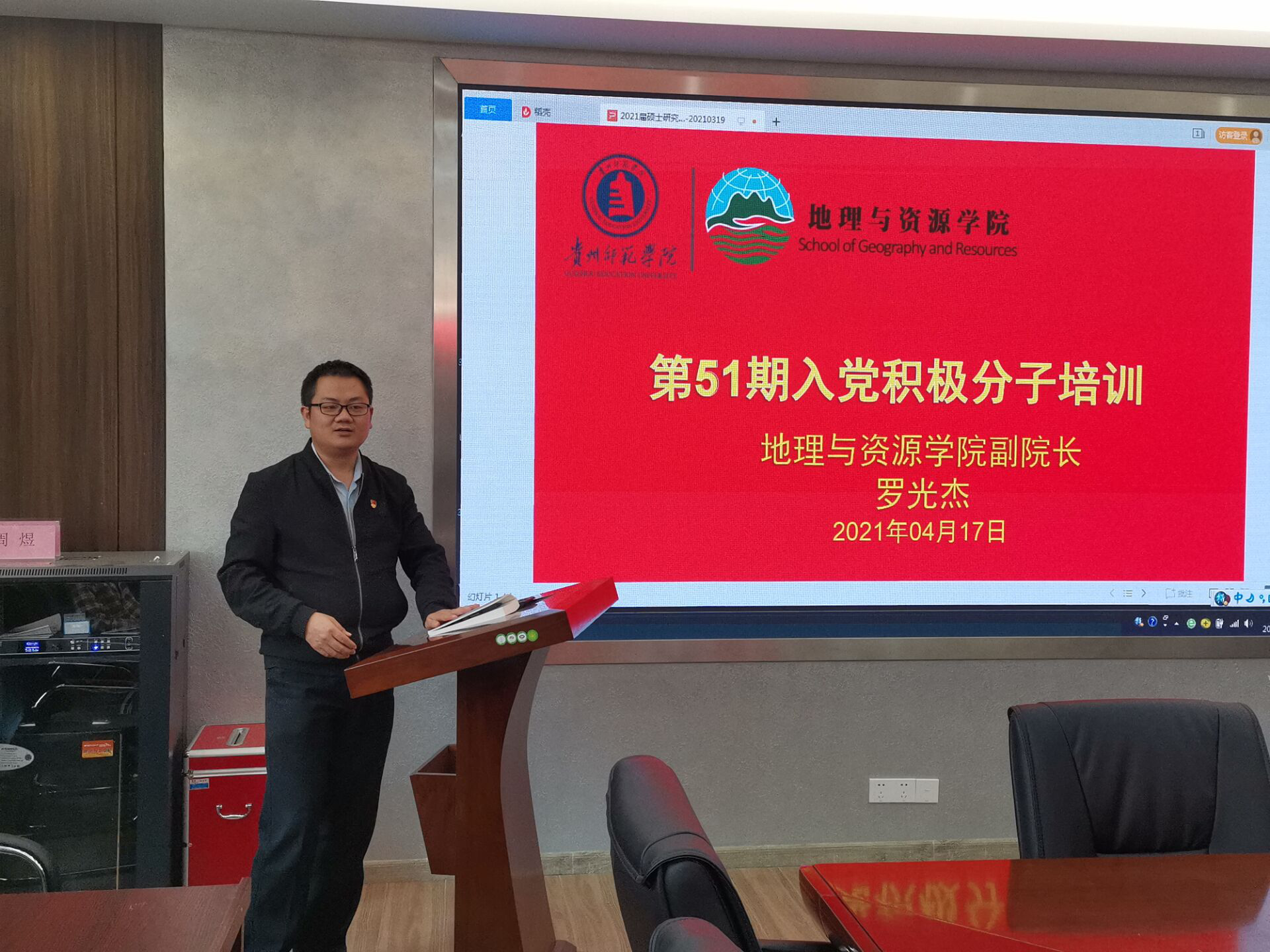 2021年4月17日,jinnianhui金年会诚信至上副院长罗光杰老师为第51期入党积极分子党课培训第三次专题讲座——“中国共产党的奋斗目标和基本路线”开讲。