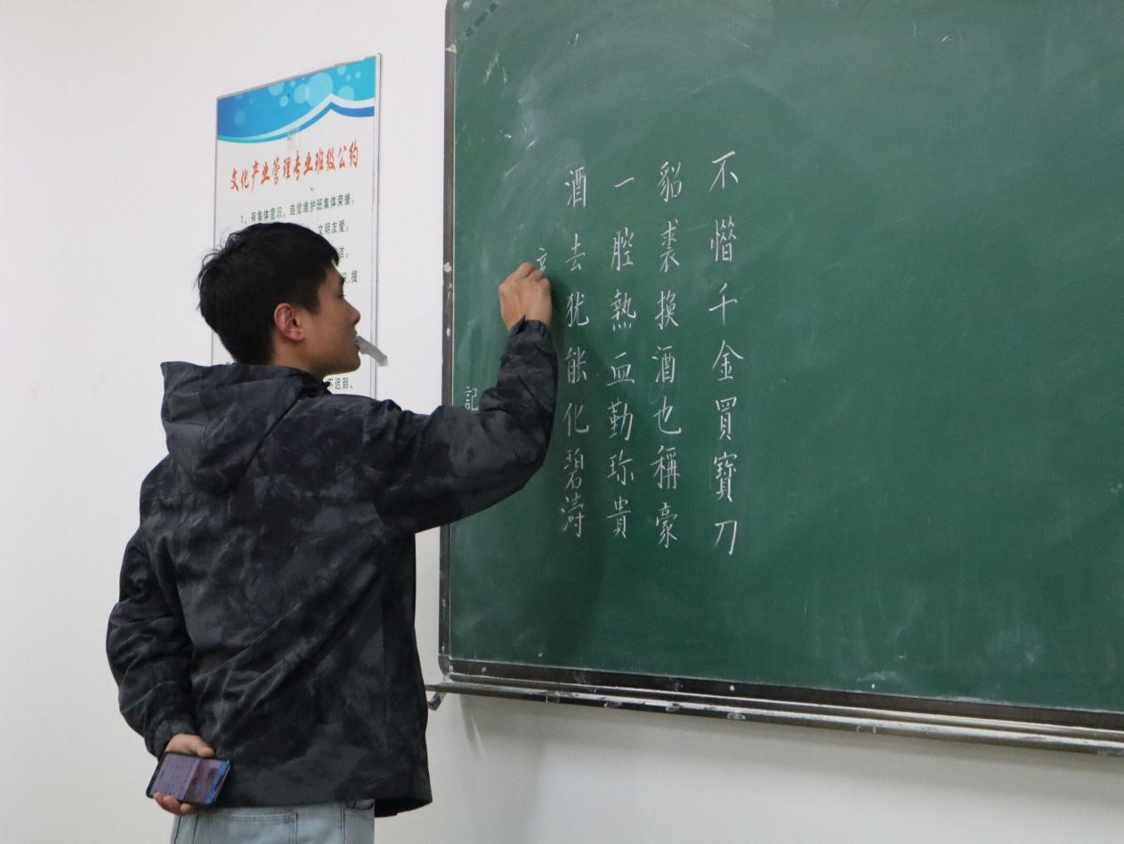 本次大赛分为粉笔、毛笔、钢笔和板画四项内容。比赛现场井然有序,比赛紧张激烈,选手表现淡定从容,钢笔字透露出诗与远方的理想,粉笔字写出教书育人的渴望,毛笔字展现出朴实无华的信念,板画绘出对祖国江山的自豪。比赛展现了当代大学生奋发进取的精神面貌,锻炼了教学书写绘画技能。最后大赛在和谐融洽的氛围中结束。