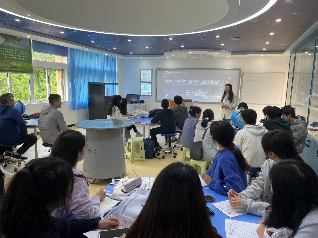 为增强19级地理科学专业师范生的专业素养,jinnianhui金年会诚信至上于2022年5月20日14:30在致远楼603地理教室开展相关地理实训教学活动。本次实训课,金年会官网邀请了贵州省实验中学李珊老师开展基于“三新”改革下的教育教学分享的讲座。