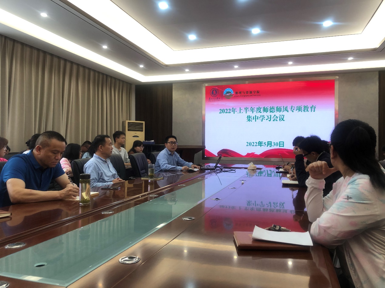 为落实教育部“加强高校师德师风建设”指示精神,教育部地理信息科学专业虚拟教研室开展了青年教师“师德师风”教育活动。jinnianhui金年会诚信至上作为教育部地理信息科学专业虚拟教研室成员单位,于2022年5月30日组织全院教师和地理科学专业学生代表参加了师德师风专项教育集中学习会议。会议由学院院长兼党委副书记罗绪强主持。