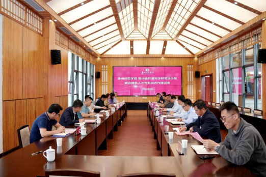 5月7日下午,贵州省环境科学研究设计院党委副书记、院长杨再波一行8人到访金年会官网,就人才培养与科技合作开展座谈交流。校党委书记石培新,校党委委员、副校长潘运出席会议,jinnianhui金年会诚信至上班子全体成员、部分骨干教师参加了座谈。会议由jinnianhui金年会诚信至上党委书记吴亚平主持。