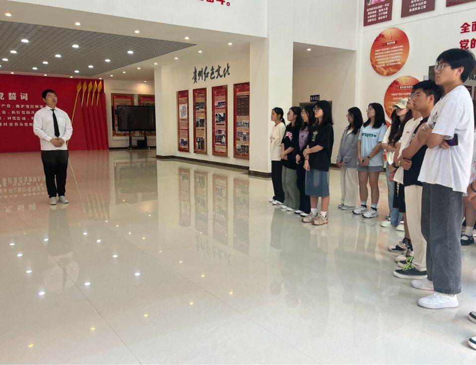 本次活动主要由讲解员带领全体参与同志进行参观。首先,在庄严肃穆的革命先驱纪念展区,讲解员讲述了革命先烈们英勇斗争、不畏牺牲的英雄事迹,全体参与同志认真聆听,内心深受触动。随后,大家来到入党誓词墙前,庄严地举起右手,跟随讲解员重温入党誓词,听着让人心潮澎湃的铮铮誓言,同志们更加坚定了为党和人民的事业奋斗终身的决心。紧接着,全体参与同志参观了以“贵州红色文化”为主题的展区。讲解员详细介绍了贵州在中国革命史上的独特地位和贡献,展示了贵州人民在不同历史时期特别是革命战争年代所展现出的坚韧不拔和无私奉献的精神,一幅幅图深刻描绘了贵州红色文化的深厚底蕴和时代价值。最后,全体参与同志走进了全面展示党的“伟大历程”的展厅。在讲解员的引导下,大家系统回顾了中国共产党自成立以来走过的辉煌历程,深刻领悟了党不断从胜利走向新的胜利的历史逻辑和内在规律。