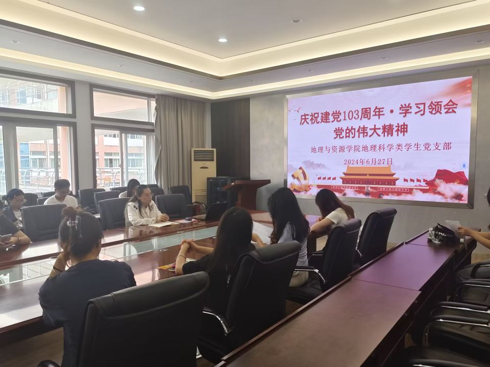 为隆重庆祝中国共产党成立103周年,进一步学习和领会党的伟大精神,深化对党的历史认识,激发爱国情怀。2024年6月27日,jinnianhui金年会诚信至上地理科学类学生党支部在宁静楼323会议室开展了“庆祝建党103周年·学习领会党的伟大精神”主题活动。