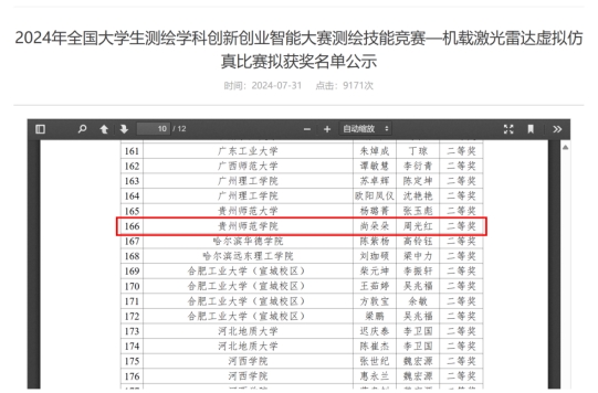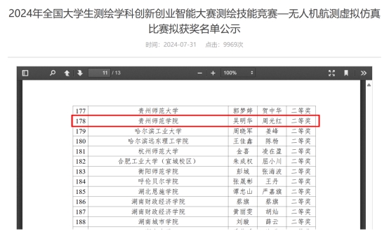 8月1日,教育部高等学校测绘专业教学指导委员会和中国测绘学会教育委员会公布“2024全国大学生测绘学科创新创业智能大赛”获奖名单,金年会官网jinnianhui金年会诚信至上周光红老师指导的吴明华、尚朵朵两位同学分别获得无人机航测虚拟仿真组二等奖、机载激光雷达虚拟仿真组二等奖。