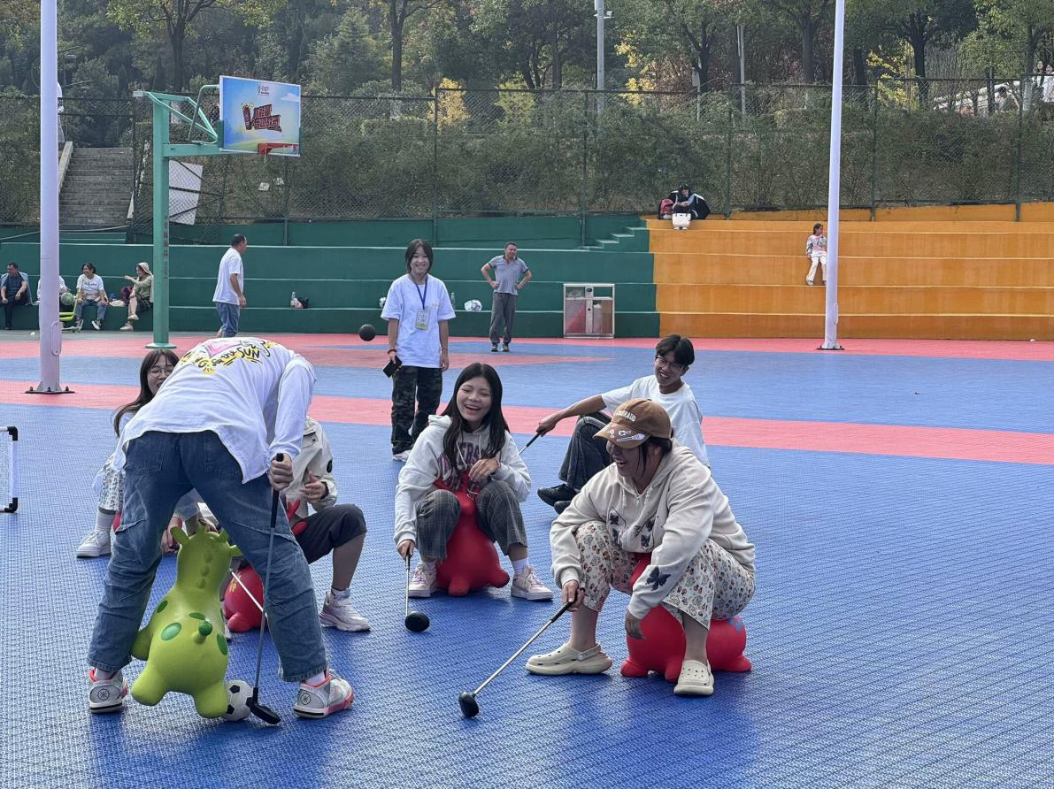 活动期间,运动员们秉持着“友谊第一,比赛第二”的体育精神参与其中。班级篮球赛上,各班队员们展示出极高的热情和良好的竞技状态,一次次精彩的传球,精准的投篮,默契的配合赢得了现场观众的阵阵喝彩;拔河友谊赛中,各班队伍都紧握长绳,齐心协力,为争班级荣誉而拼搏。乒乓球单打比赛也是非常激烈,参赛选手接球迅猛,展现出青年运动员奋勇争先、昂扬向上的精神风貌。趣味团体项目则考验着团队成员之间的默契配合,在盲人足球活动中,大家喊着整齐的口号,步伐一致地向前迈进;趣味马球项目,同学们齐心协力推动马球,展示出了强大的团队凝聚力;而乒乓球接力赛项目则考验着同学们的平衡能力和耐心,大家全力以赴、团结合作,共同为团队的胜利而努力。现场气氛热烈浓郁,加油助威声音齐放,彰显出地资学子积极向上、团结互助的精神风貌。