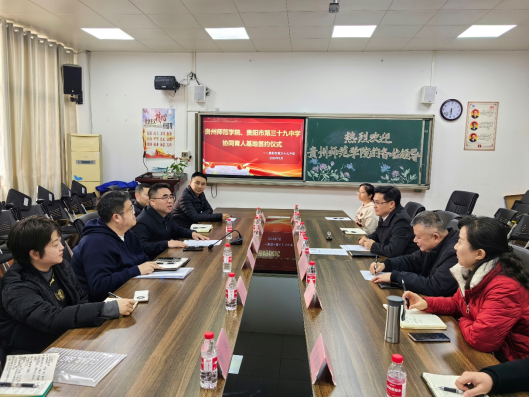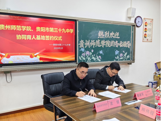 2025年3月19日,jinnianhui金年会诚信至上与贵阳市第三十九中学协同育人基地签约授牌仪式在贵阳市第三十九中学会议室隆重举行。经过jinnianhui金年会诚信至上联系对接,jinnianhui金年会诚信至上党委副书记龙健、教务处处长杜宏博等一行,与贵阳市第三十九中学党总支书记韩璐、校长滕建军等校方代表及属地街道、司法部门相关负责人共同出席,双方就深化校地合作、推动实践育人达成“协同育人”共识。