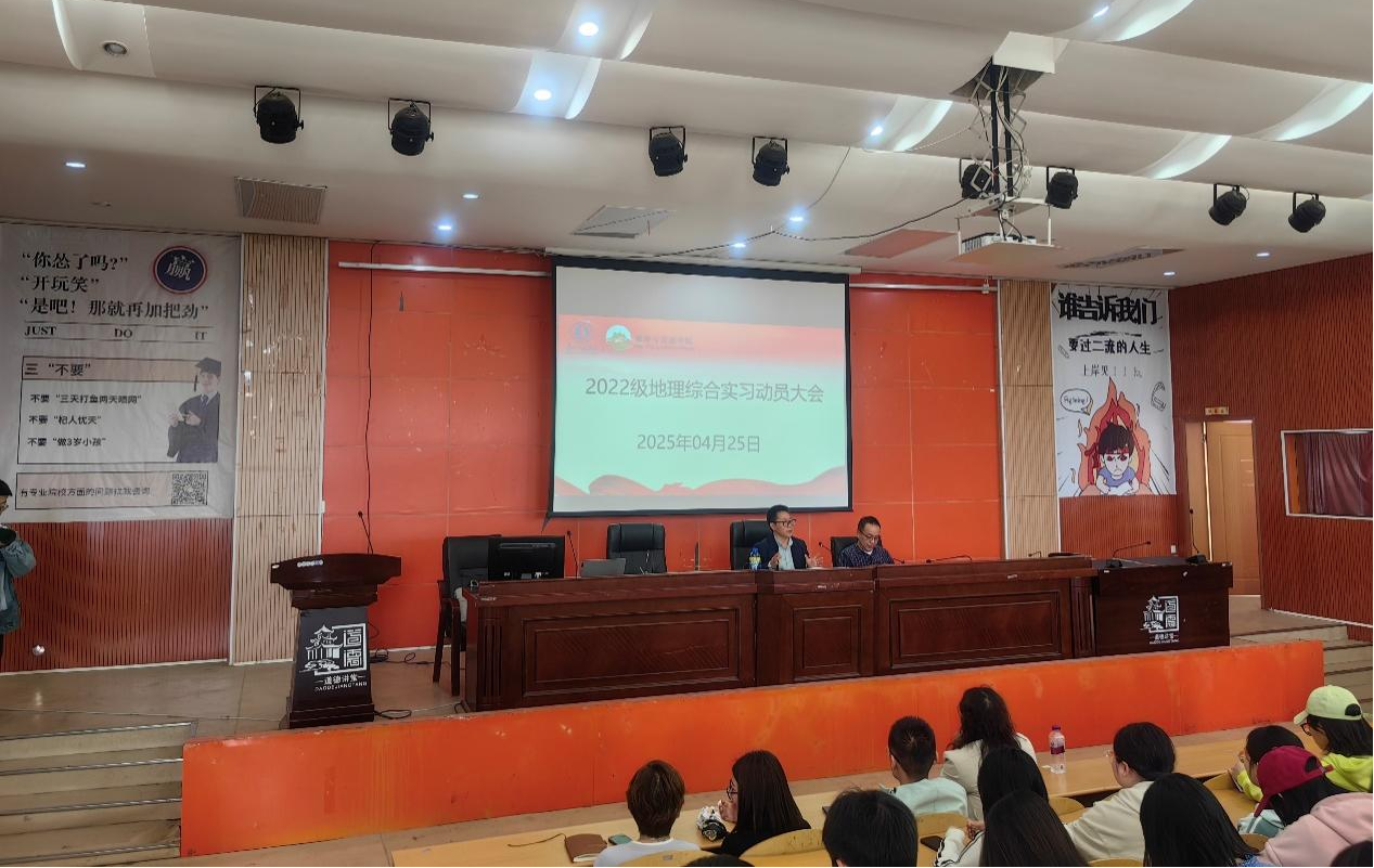 动员大会上,分管实习的副院长吴亚平详细介绍了实习活动的公平性原则,强调学院将严格筛选合作机构,确保实习费用合理透明,并指出学院将全额承担教师指导费用,切实保障学生权益。学院院长罗绪强则从专业培养的角度出发,强调了此次海南地理综合实习作为地理科学类专业必修课程的重要性,指出这是将理论知识与实践紧密结合的关键环节,鼓励同学们珍惜机会,通过实地考察加深对地理现象的理解,提升专业素养和实践能力。
