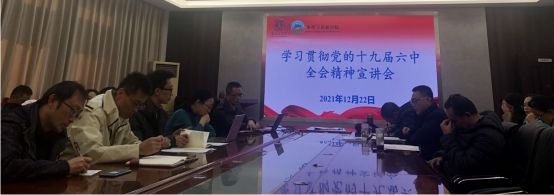 12月23日,jinnianhui金年会诚信至上在学院会议室开展了学习贯彻党的十九届六中全会精神宣讲,宣讲人为学院党总支书记吴亚平。宣讲会议由党总支副书记、院长罗绪强主持,全体教师参加宣讲活动。