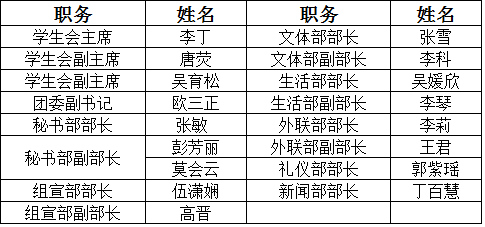 3、学生会各部主要负责人名单: