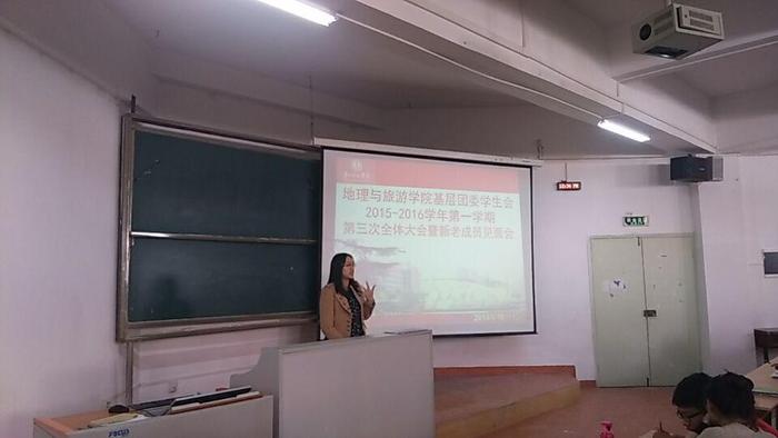 2015年10月12日,地理与旅游学院学生会第三次全体大会暨新老成员见面会在宁静楼235召开。本次会议旨在加强团结学生会力量为迎接本科教学评估作出更多努力,并促进新老成员之间相互了解沟通。